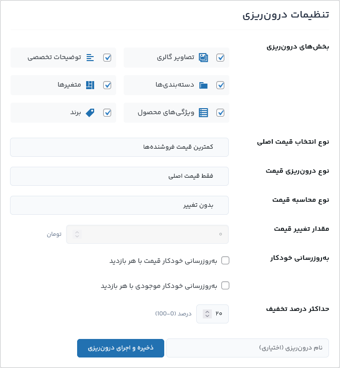 تنظیمات به روز رسانی خودکار قیمت و موجودی
